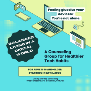 We all rely on our screens… but sometimes they take over. This open counseling group at Linking the Gap is designed to help adults build balance, reduce overwhelm, and create healthier digital habits. You’re welcome to attend one or multiple sessions.