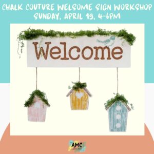 Guests will be guided through creating a spring welcome sign using Chalk Couture products in a small group setting. This beginner-friendly workshop includes step-by-step instruction.
