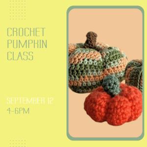 Our September crochet class with Anna from Knotty Flowers will focus on making pumpkins. Students must have basic crochet skills, as this is not a learn-to-crochet class. Guests may register with or without provided materials, reflected in the pricing. Beginner Crochet returns in October.