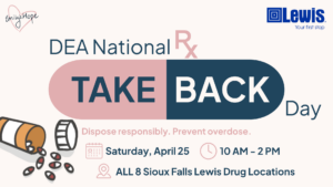 Can’t make it on April 25? Lewis Drug offers year-round medication disposal, making it easy to keep your home safe and reduce the risk of accidental misuse or overdose.