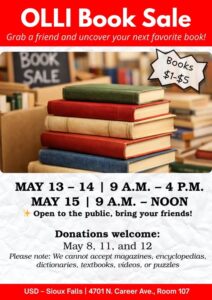 Join OLLI (Osher Lifelong Learning Institute) for a community book sale in Sioux Falls!