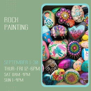Rock Painting returns for September! Drop in during store hours and decorate your rock creation. This project is available all month on a free-will donation basis, making it perfect for families looking for a creative outing.