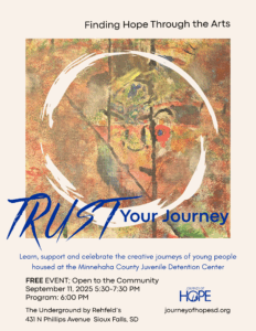Join us to learn, support and celebrate the creative journeys of young people housed at the Minnehaha County Juvenile Detention Center.
