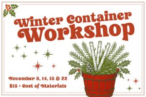 Create your own festive outdoor container to brighten up the winter season! Our team will guide you step-by-step in designing a beautiful arrangement using fresh greens, branches, and decorations.