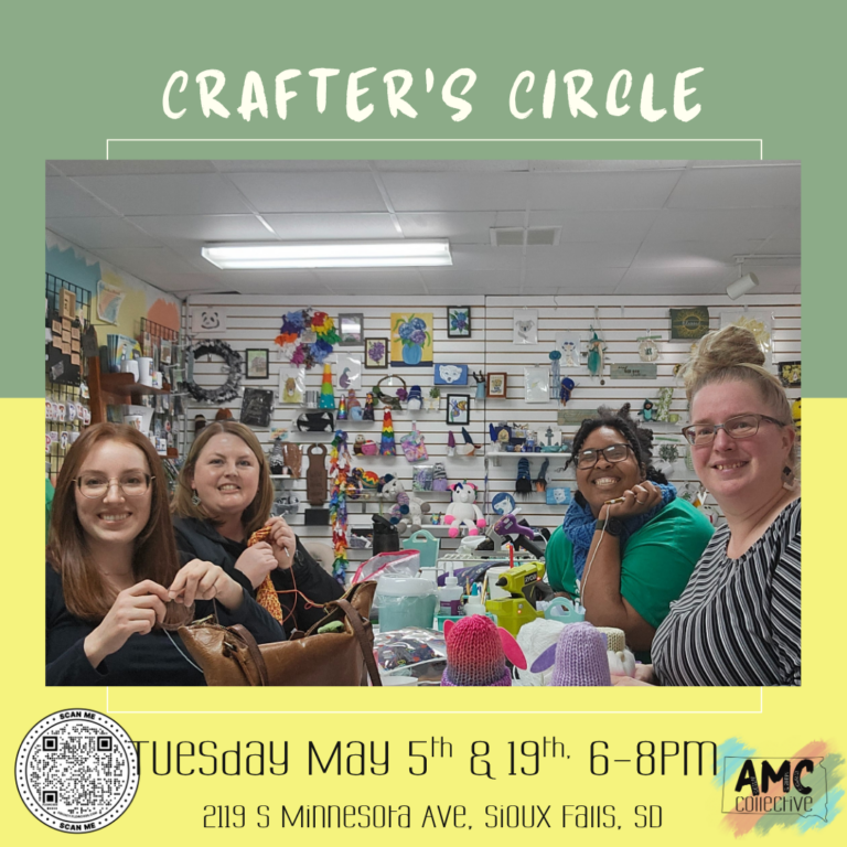 Join us on May 5 and May 19 for Crafters Circle at AMC Collective. Bring your own craft project and enjoy a relaxed, welcoming evening of creativity and connection. Great for crocheters, knitters, scrapbookers, painters, and makers of all kinds.