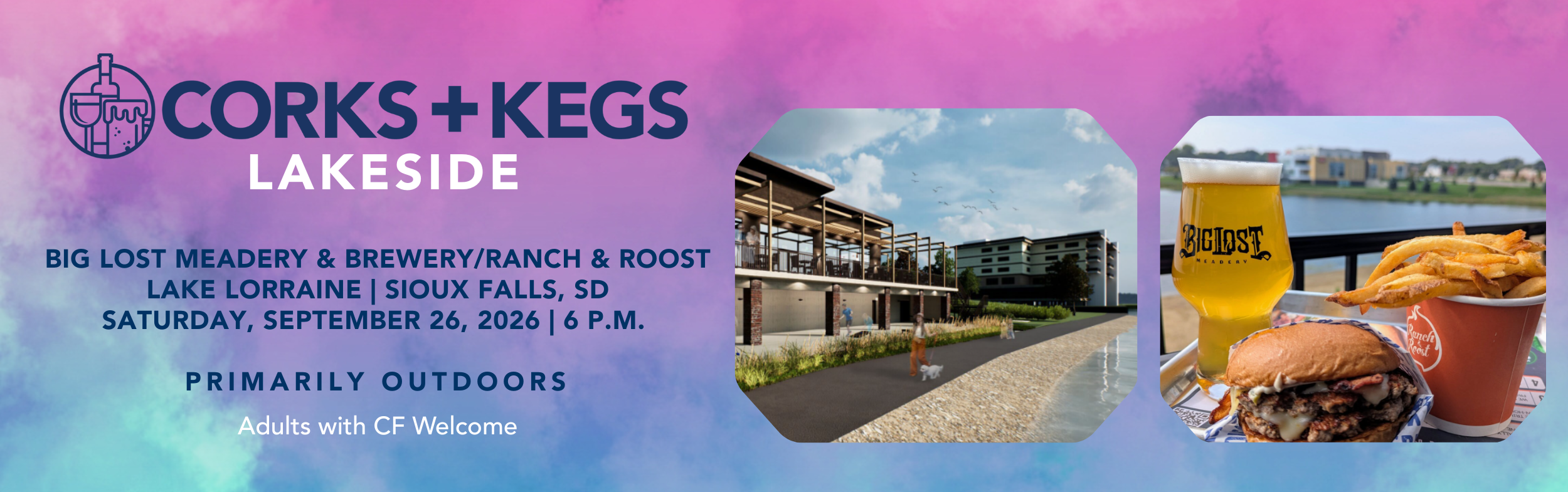 Join us at Lake Lorraine for the 12th anniversary of Corks & Kegs Lakeside Edition! A festive atmosphere awaits you at one of Sioux Falls’ newest hotspots: Big Lost Meadery and Brewery and Ranch and Roost on the shores of Lake Lorraine. This is an unforgettable fall evening featuring wine, brews, mocktinis, elevated grub, shoreline […]